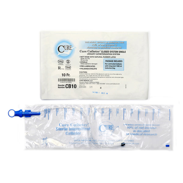 Complete urinary catheterization system Catheter is enclosed in a 1500-mL collection bag